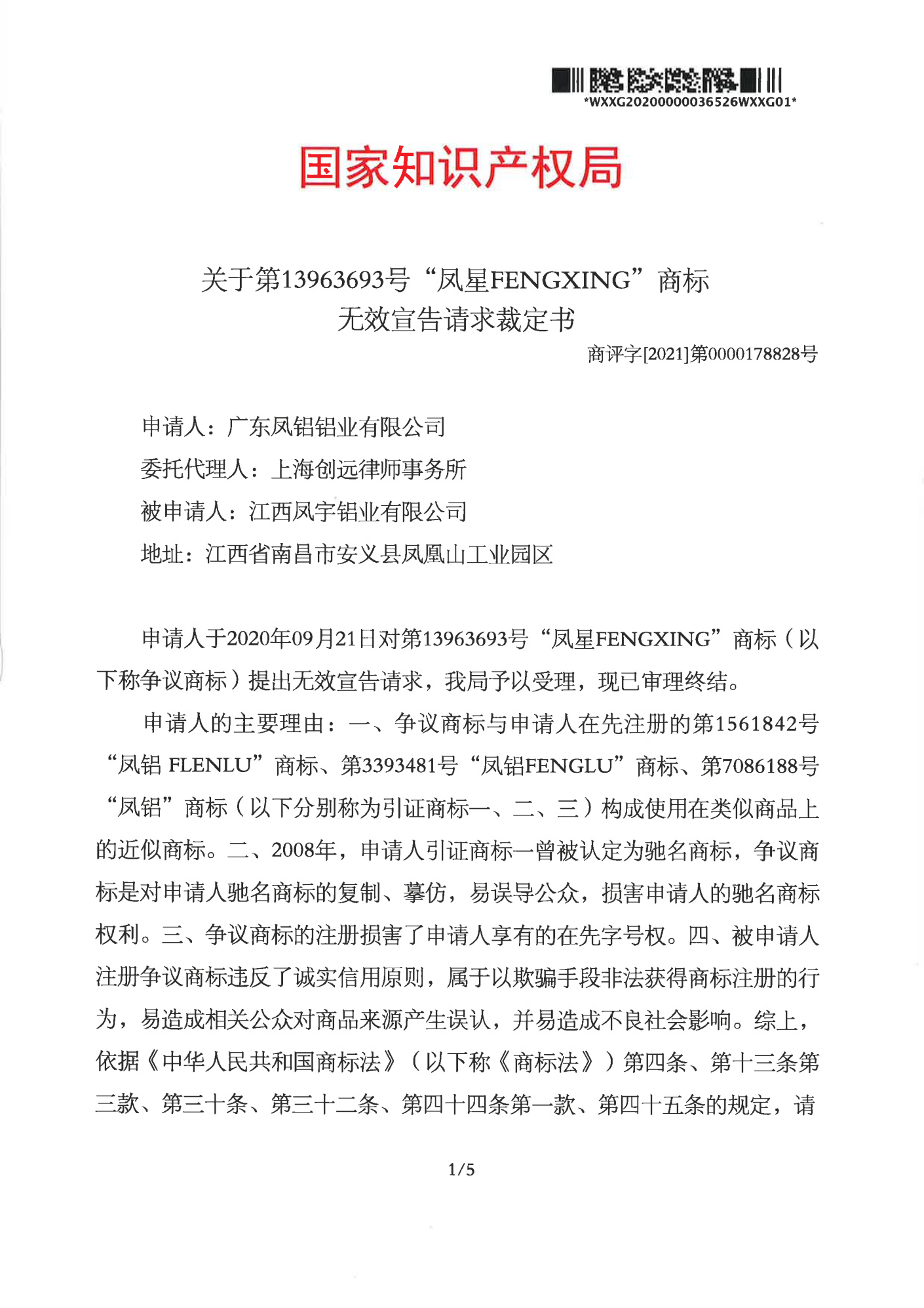常州辉知队 | 国家知识产权局:“凤星”商标无效